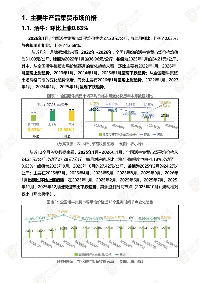农小蜂-全国主要牛羊产品集贸市场价格监测月报(2026年1月).pdf