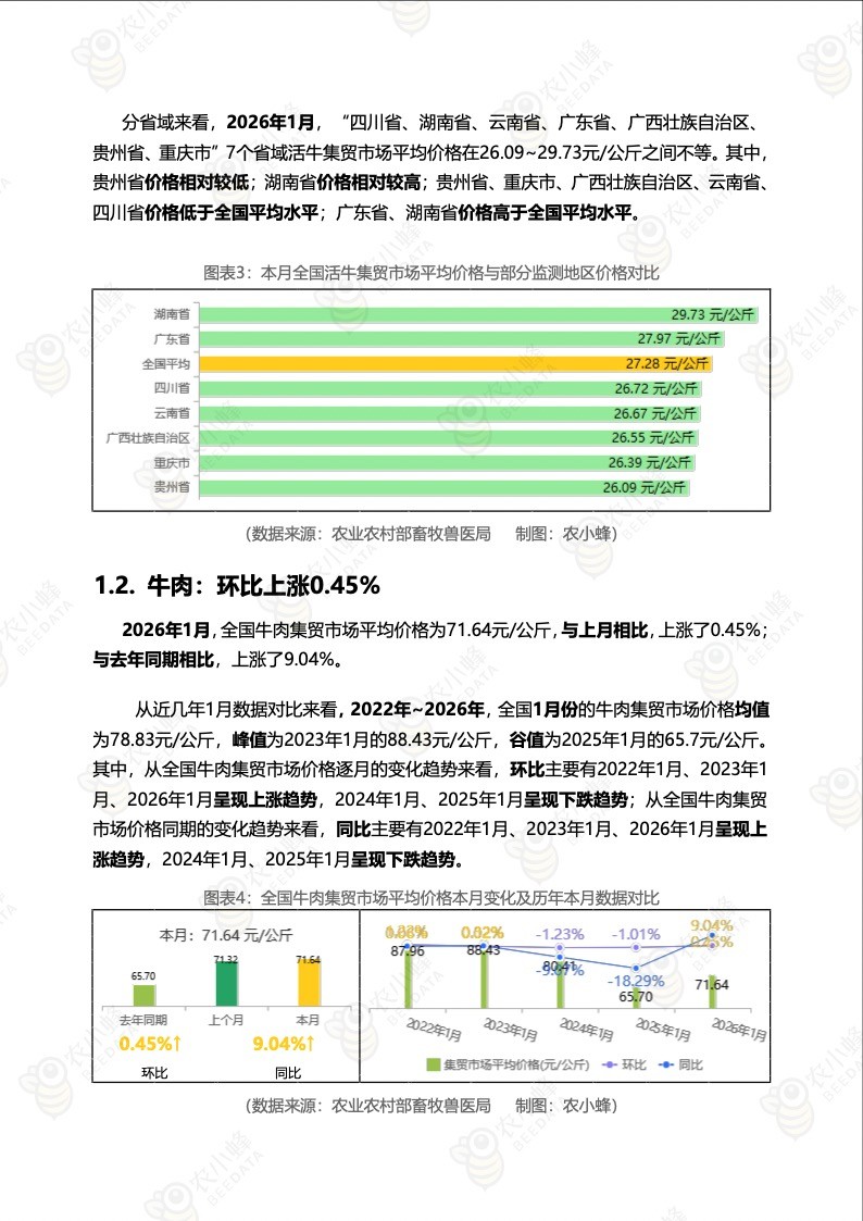 《农小蜂:全国主要牛羊产品集贸市场价格监测月报(2026年1月)》