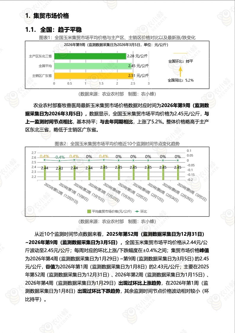 《农小蜂:全国玉米价格行情监测周报(2026年第9周)》