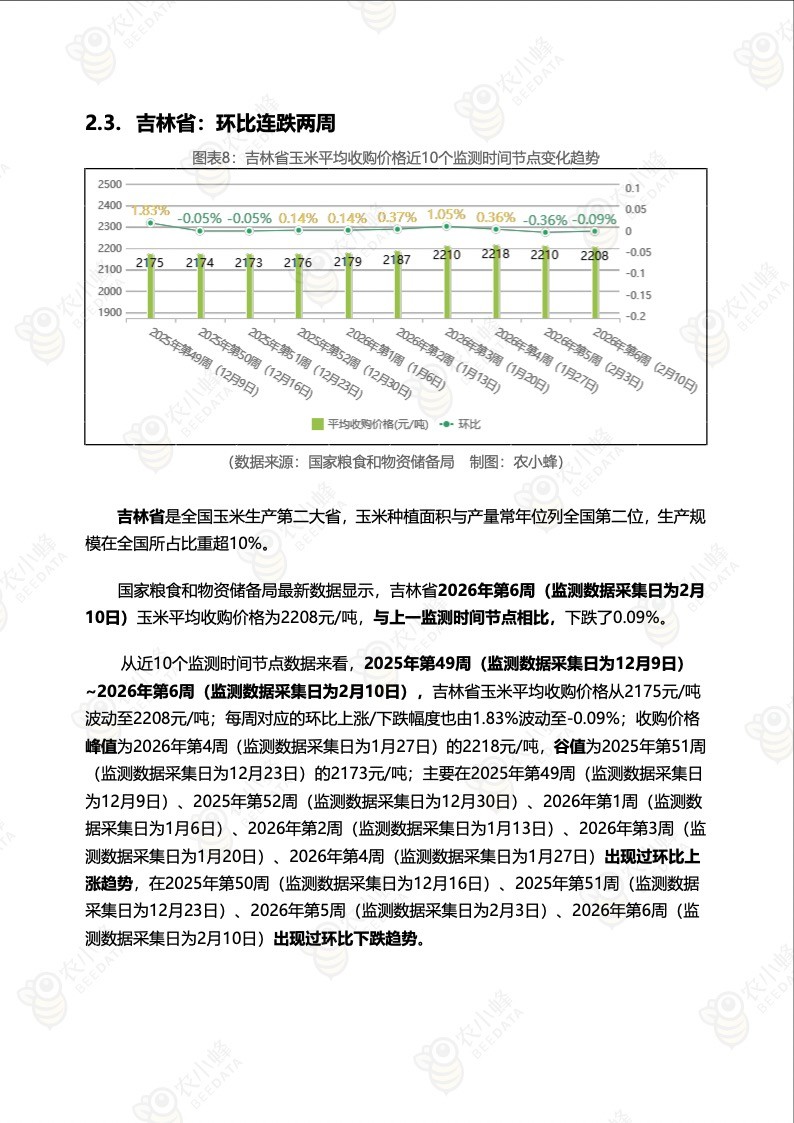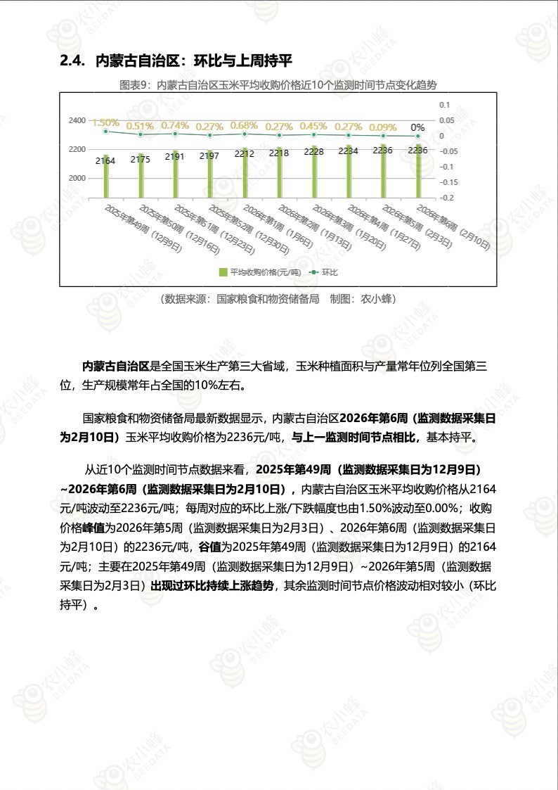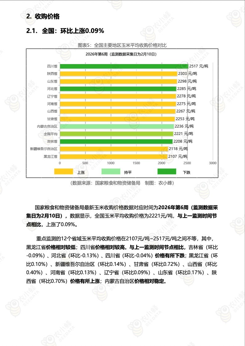 《农小蜂:全国玉米价格行情监测周报(2026年第6周)》