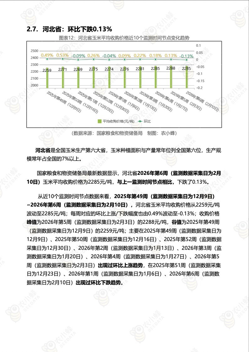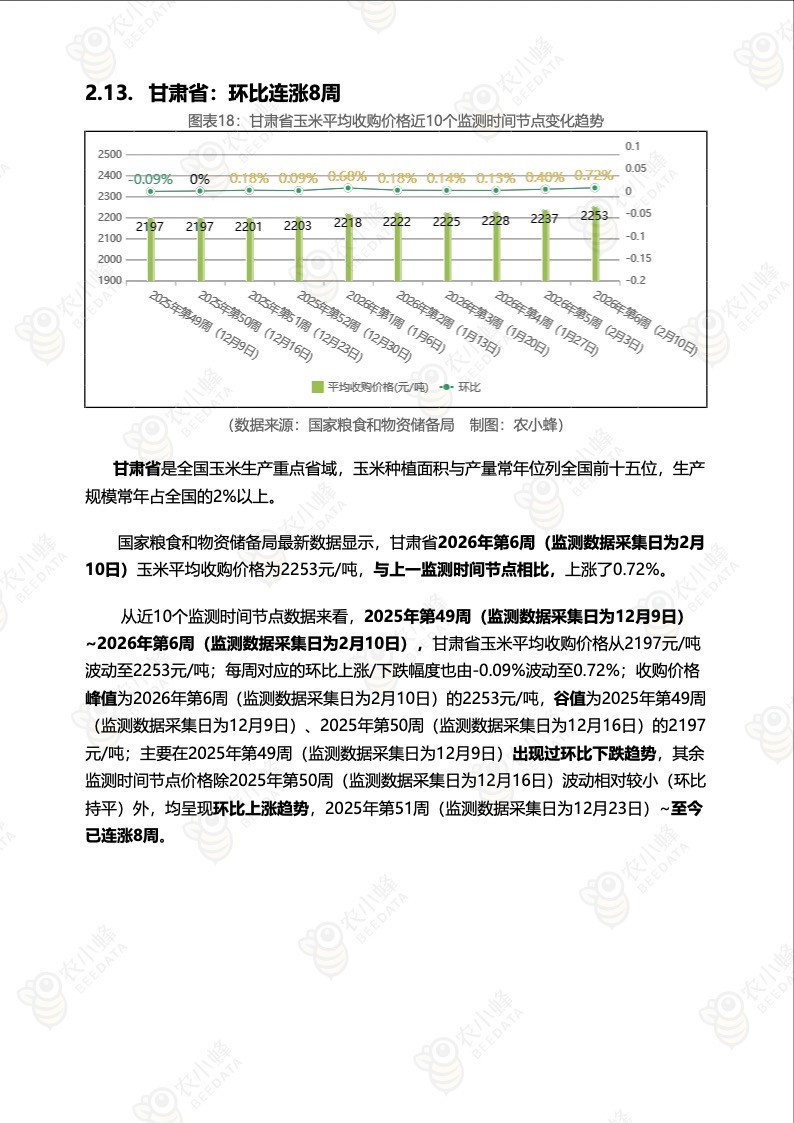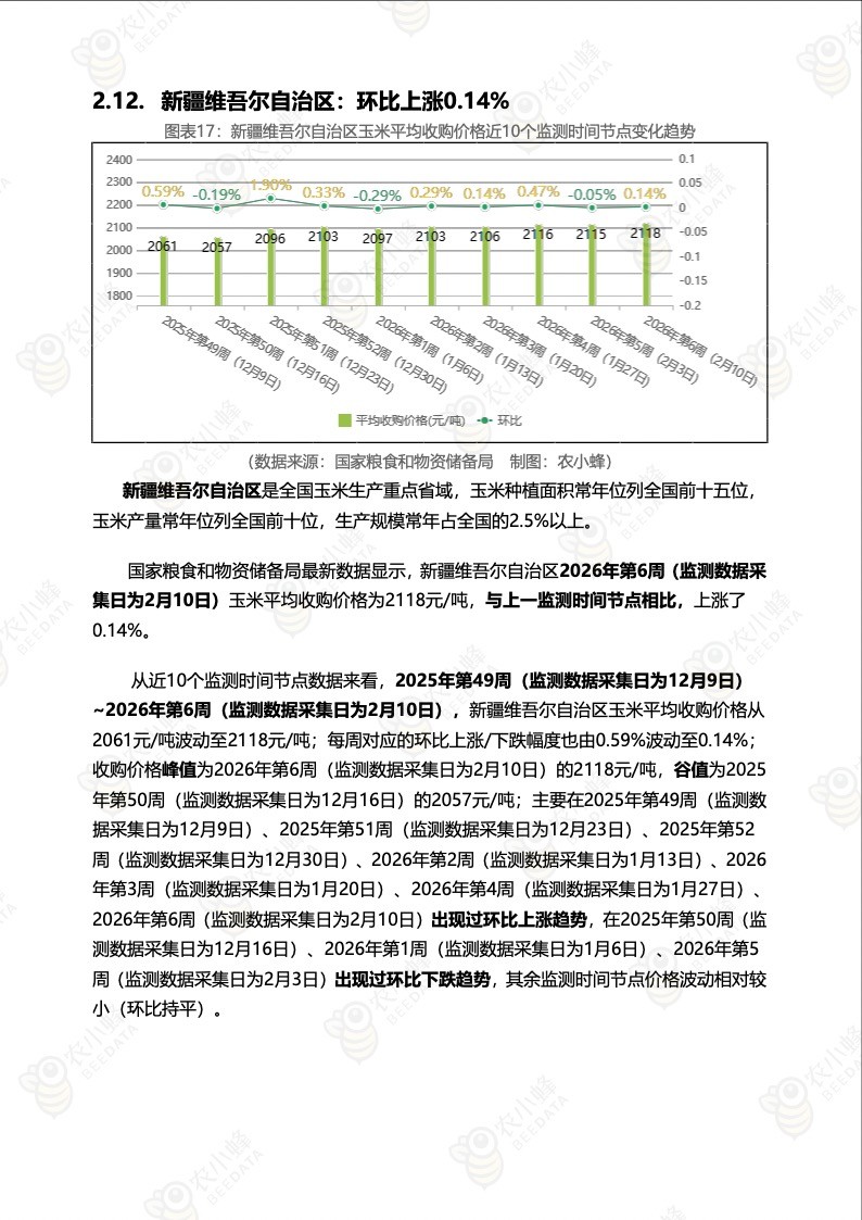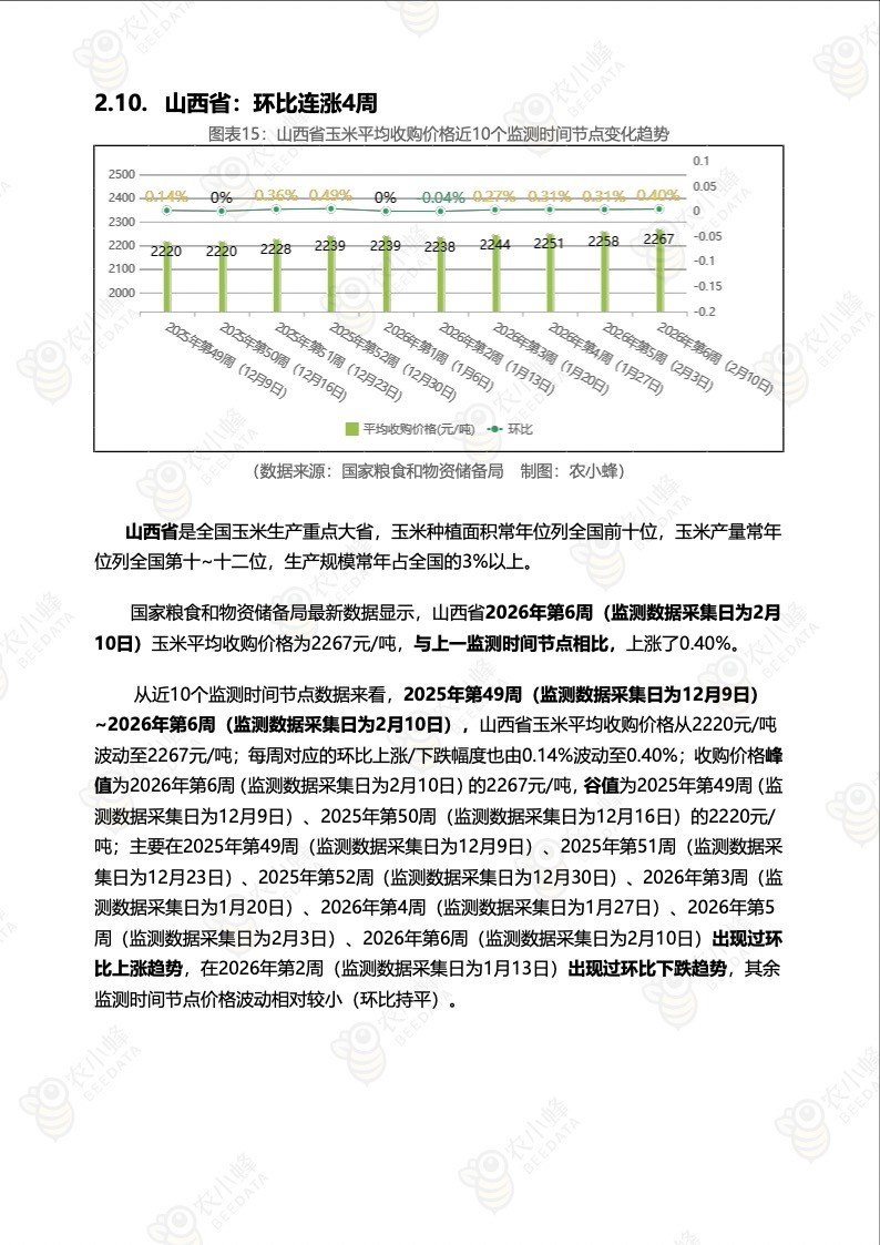 《农小蜂:全国玉米价格行情监测周报(2026年第6周)》